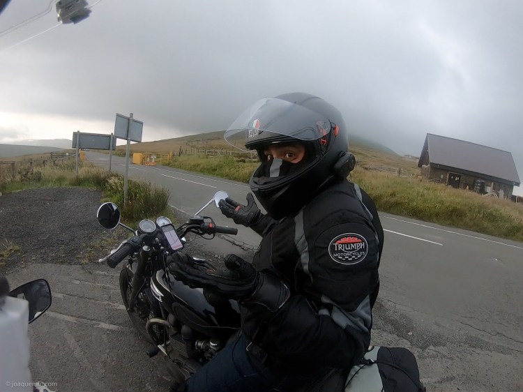 A Triumph motorcycle hops around the isles and even attempts the TT course.